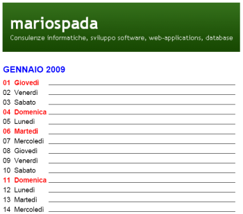 Per questi motivi, ed anche per imparare qualcosa di più sulle funzioni di data e ora in PHP, ho pensato di scrivere una classe in grado di generare il mio calendario da appendere in cucina!
